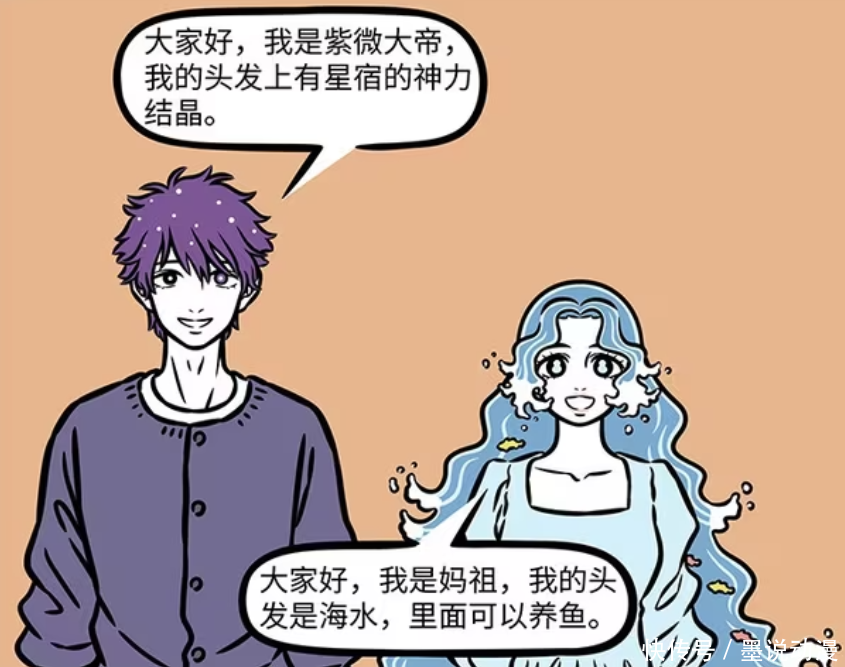 紫微大帝是第一个介绍的神仙芒果配资,他在人类世界生活一段时间之后,除了会搭配自己的服饰之外,发型也算弄得比较帅气。另外紫微大帝头发上是星宿的神力结晶,不能轻易触碰。妈祖站在紫微大帝身边,她的头发是海水,可以在里面养鱼和其他海洋生物。